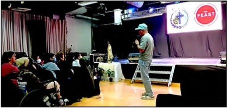 At right, Bro. Gary Puno, JCCFC president, leads the Assembly, discussing plans and encouraging active participation of the beneficiaries.