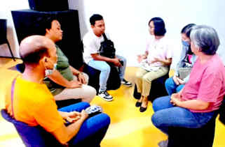 At right, Sis. Maritess Cordero, JCCFC board secretary, leads group sharing.
